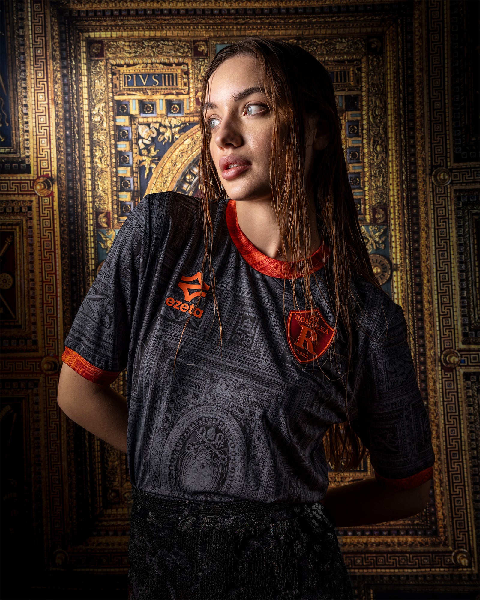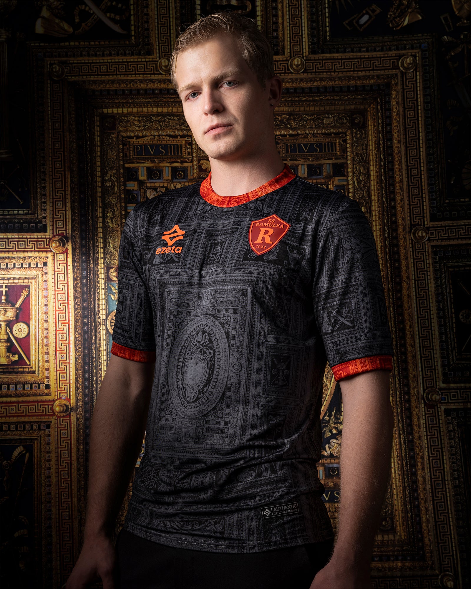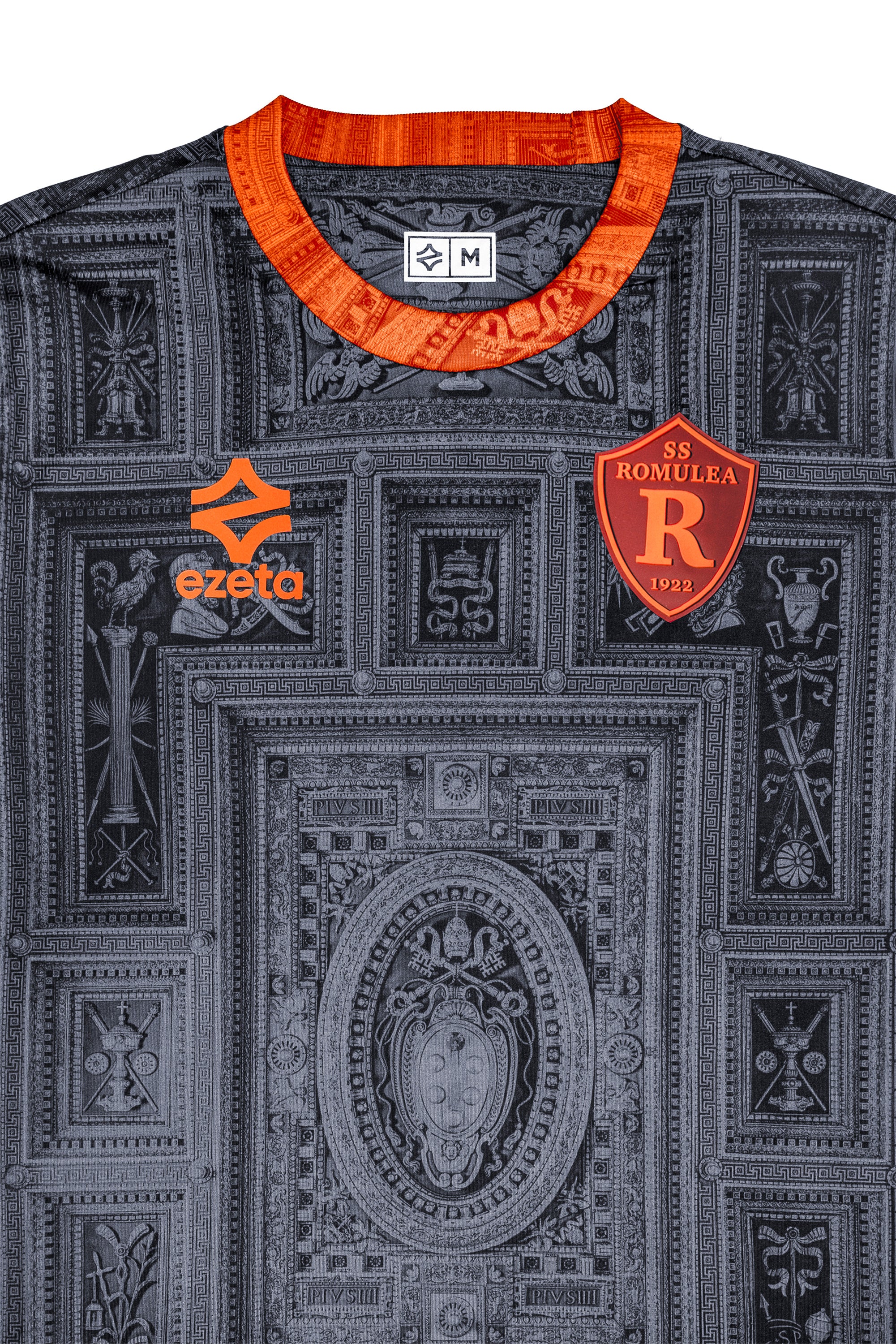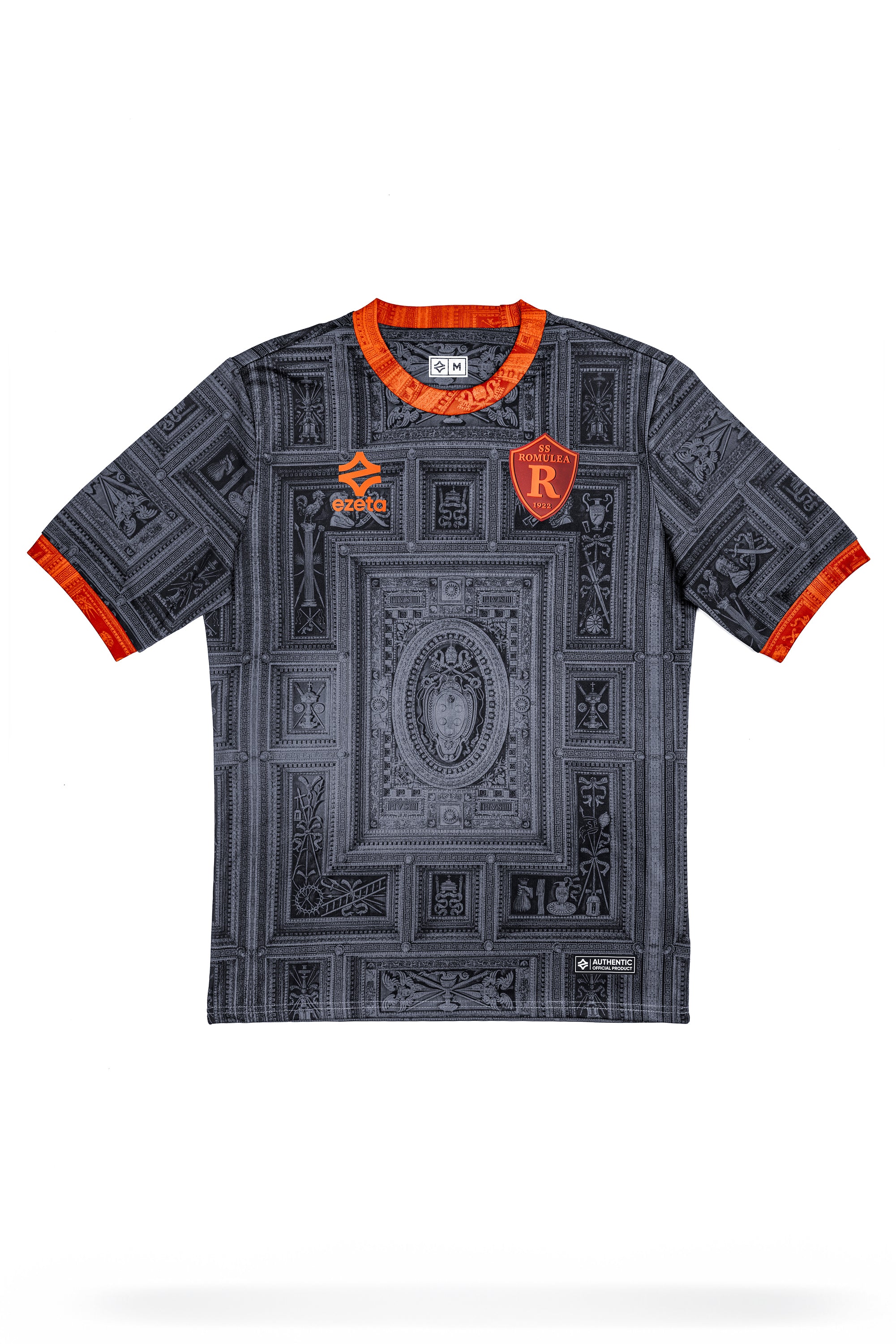 Dieses wunderschöne 24/25 Ausweich-Trikot ist inspiriert von der goldenen Kasettendecke der Kirche, die von Michelangelo entworfen wurde und später von Daniele da Volterra im Auftrag der beiden Päpste Puis IV und Puis V geschaffen wurde.