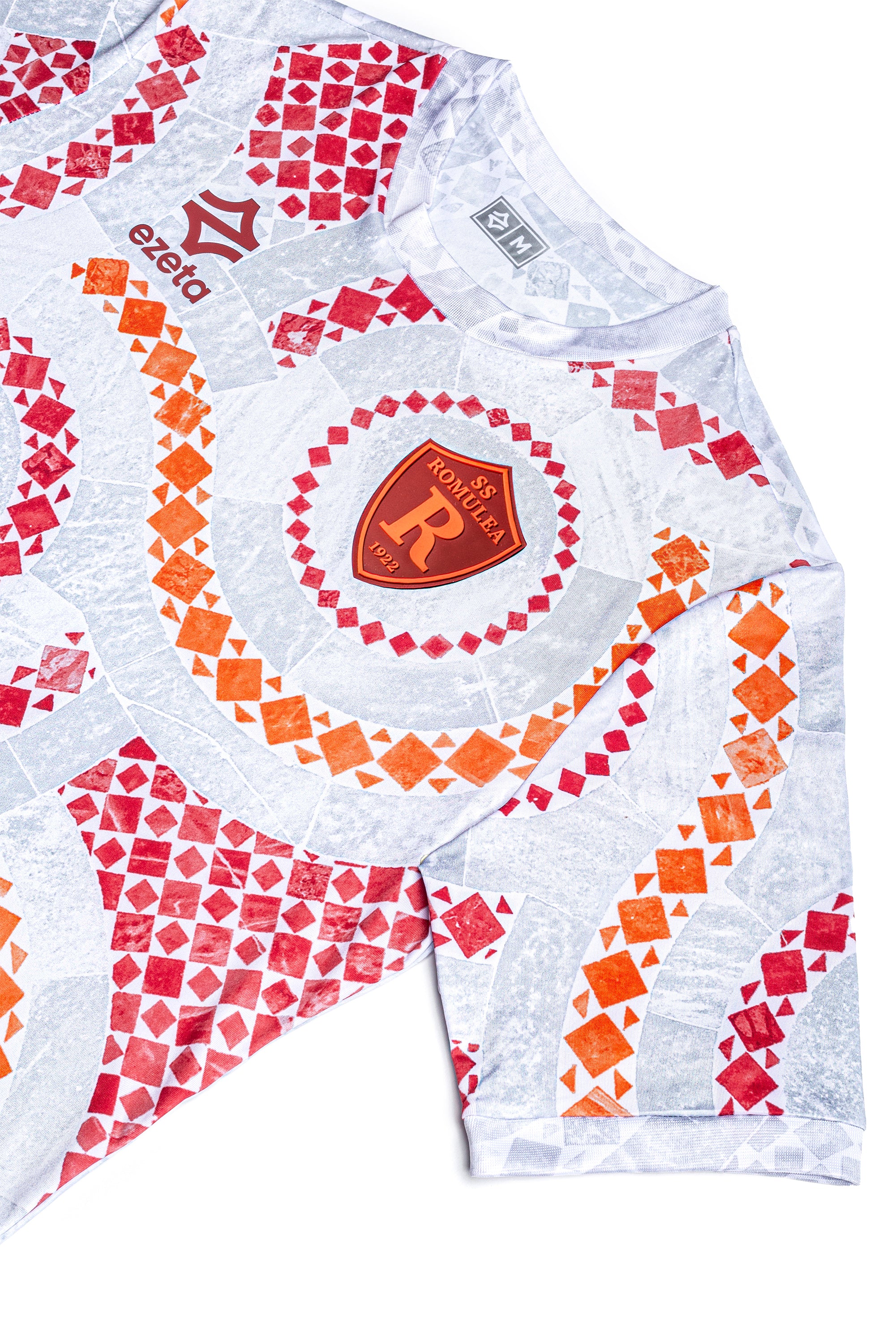 Dieses wunderschöne 24/25 Ausweich-Trikot ist inspiriert von den kosmatesken Fußböden, die mit polychromem Marmor verziert sind und typisch für die mittelalterliche römische Kunst des 12. und 13. Jahrhunderts war.