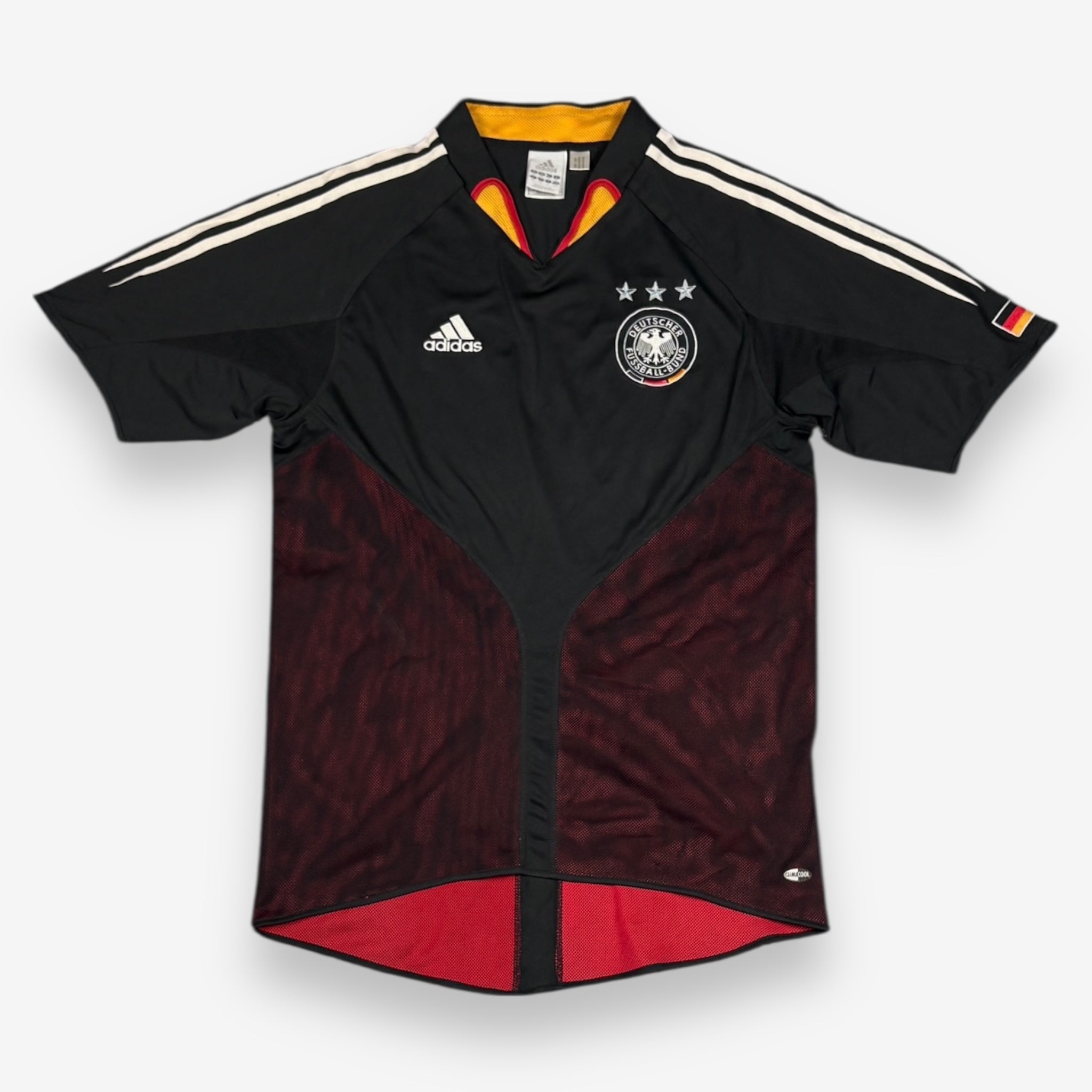 Bei der EM 2004 sind die Legenden der deutschen Nationalmannschaft mit diesem wunderschönen Trikot der Marke Adidas aufgelaufen.